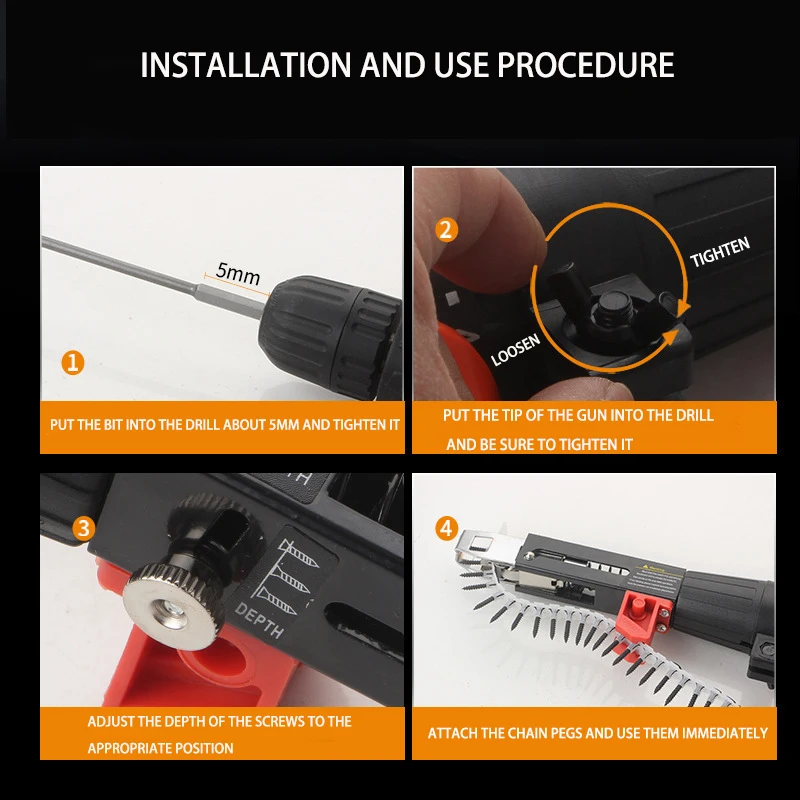 1 Juego de cabeza de pistola de tornillo de cadena, pistola de clavos automática, lote eléctrico, decoración de carpintería, destornillador autorroscante recargable - TopDealBox