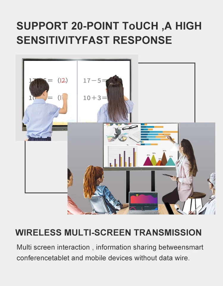 Pizarra Interactiva Digital Todo en Uno de Gran Tamaño (65, 75, 86, 100, 110 Pulgadas) con Soporte Móvil para Reuniones Educativas Escolares en China - TopDealBox