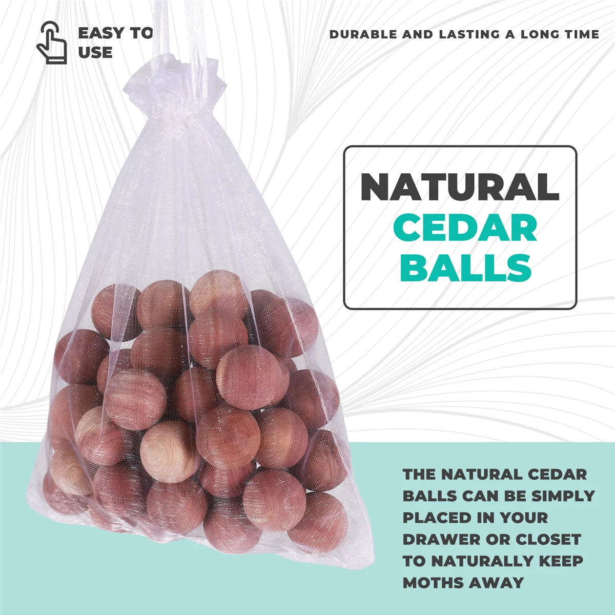 BABQ Bolas de cedro para armarios y cajones Bolas de cedro natural para almacenamiento de ropa 48 piezas con 2 bolsas de satén - TopDealBox