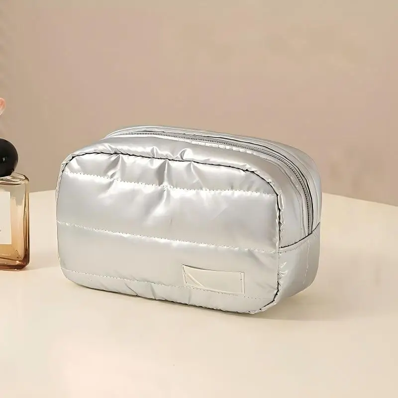 Bolsa de maquillaje portátil de color sólido para viaje, organizador de artículos de tocador cosméticos de gran capacidad