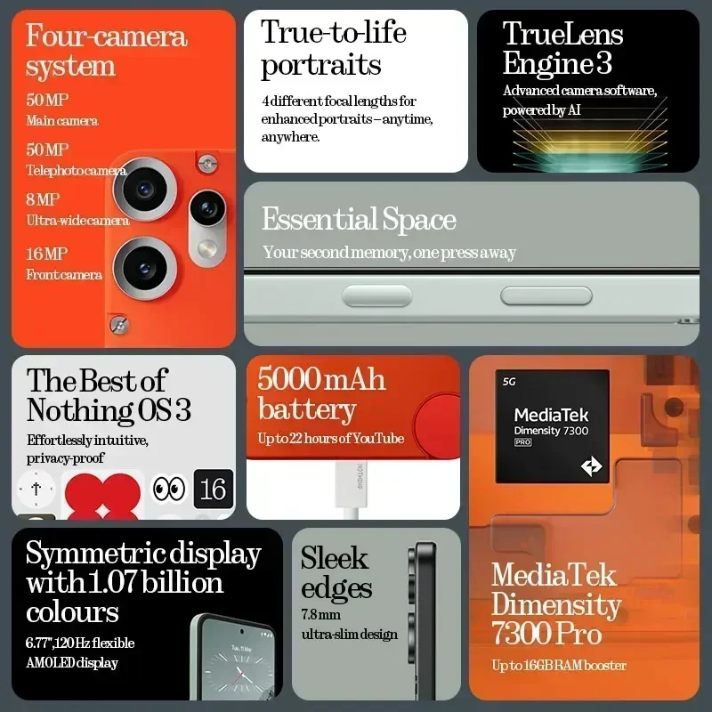 ♡Quick viewVersión global Niente teléfono (2a) Pantalla AMOLED de 6,7” 120Hz Mediatek Dimensity 7200 Pro Dual 50MP 5.000 mAh 45W IP54 Teléfono 2a6175.90 MXNHot★★★★★★4.8