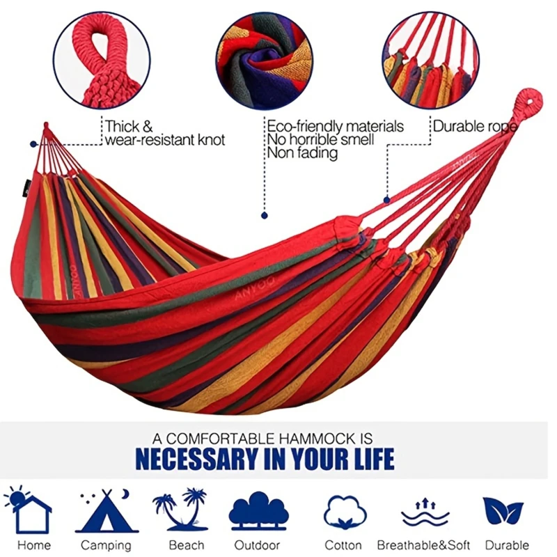Columpio de hamaca a rayas con capacidad para cama colgante de arcoíris de algodón para 1-2 personas, portátil, 260x80cm, para exteriores e interiores, con bolsa de transporte - TopDealBox