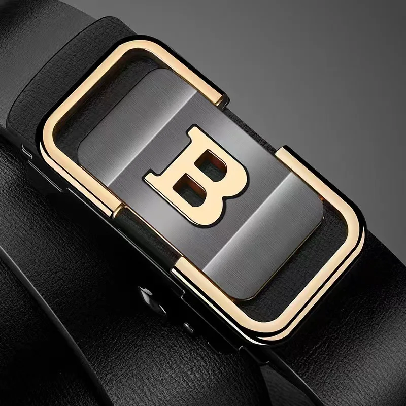 JIFANPAUL, nueva moda, cinturón para hombre, cinturón con hebilla automática sin dientes, botón de letra de aleación para moda de negocios, correa para hombre de alta calidad - TopDealBox