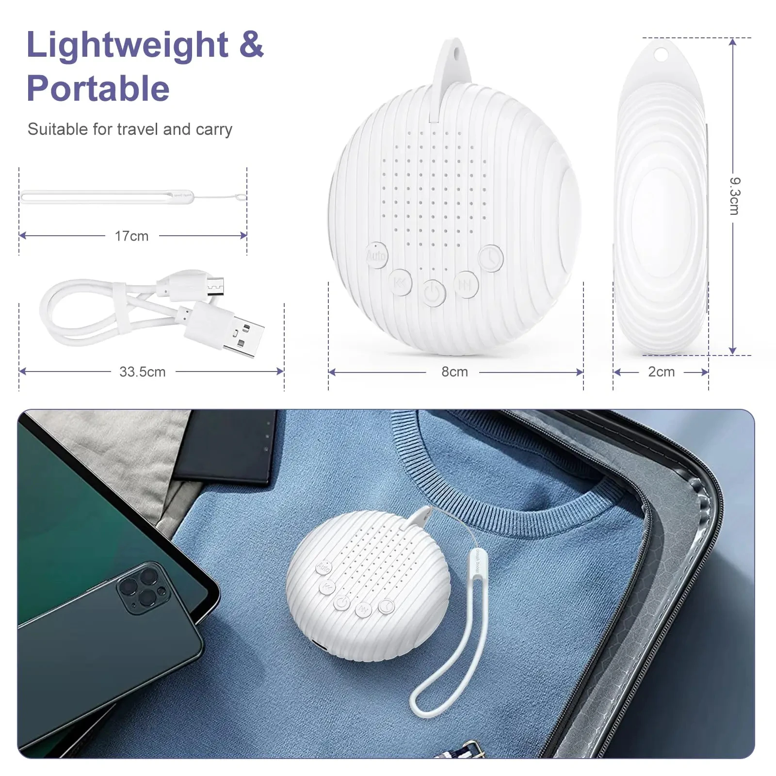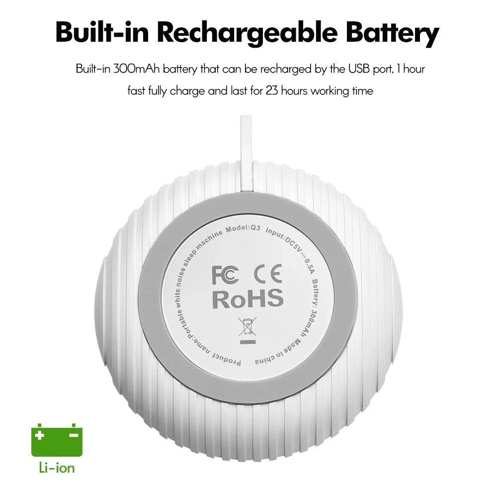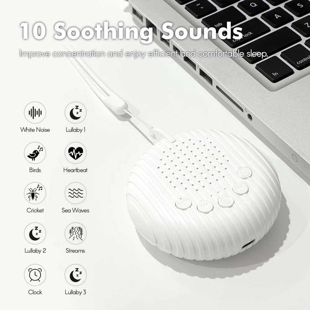 Máquina de Sonido de Ruido Blanco Portátil, Máquina de Sueño para Bebés con 10 Sonidos Relajantes, Volumen Ajustable, Batería Recargable Integrada, USB - TopDealBox