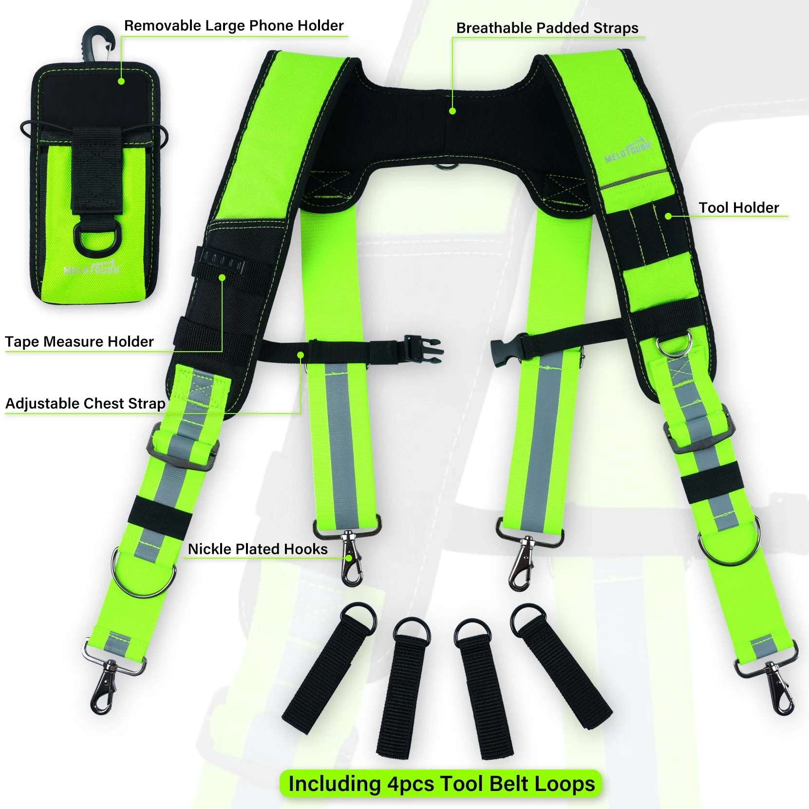 ♡Quick viewKUNN Tirantes de cinturón de herramientas de alta visibilidad Tirantes de trabajo de seguridad reflectantes de alta resistencia con hombro acolchado retirado, 4 bucles para cinturón de herramientas380.90 MXNMXN 478.54Hot★★★★★★4.7