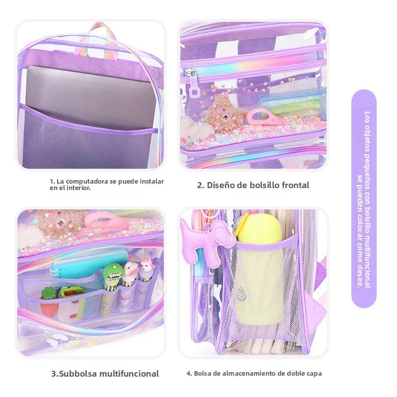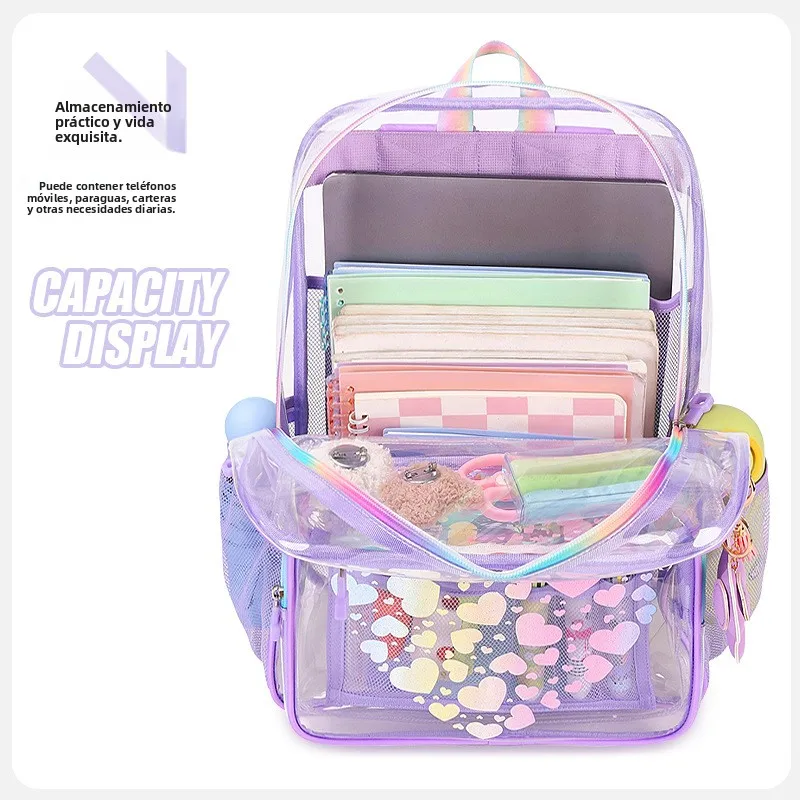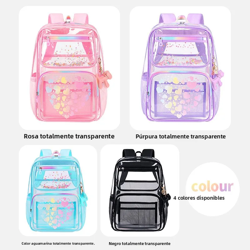Mochila Transparente con Dibujos Animados, Moderna, de Doble Asa, para Estudiantes de Primaria y Secunia, Niños y Niñas - TopDealBox