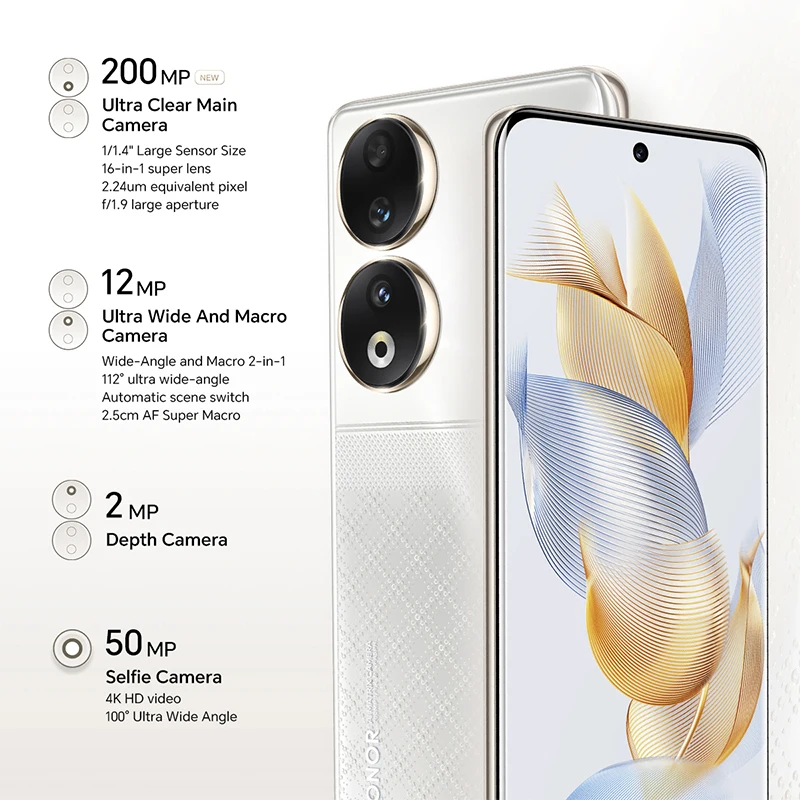 Nueva versión Global HONOR 90 5G 200MP cámara ultraclara Snapdragon 7 Gen 1 5000mAh duración de la batería 66W sobrealimentador pantalla de 120Hz - TopDealBox